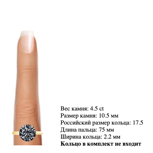 Муассанит 10,5 мм 4,5 карата Цвет: серый Огранка: Круглая КР57 (бриллиантовая)