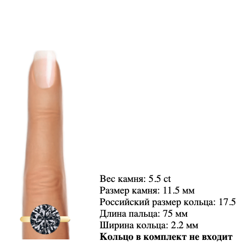 Муассанит 11,5 мм 5,5 карат Цвет: серый Огранка: Круглая КР57 (бриллиантовая)