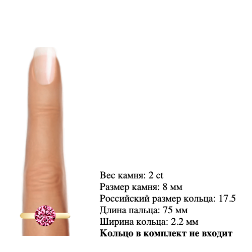 Муассанит 8 мм 2 карата Цвет: розовый Огранка: Круглая КР57 (бриллиантовая)