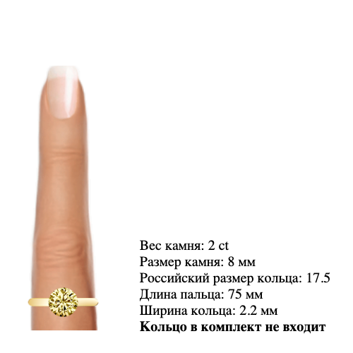 Муассанит 8 мм 2 карата Цвет: жёлтый Огранка: Круглая КР57 (бриллиантовая)